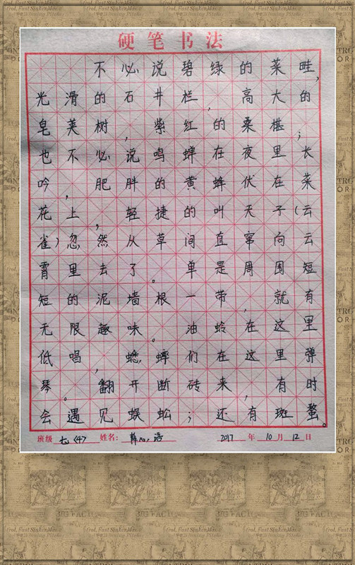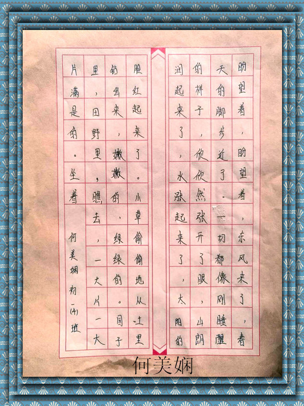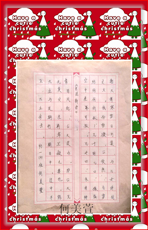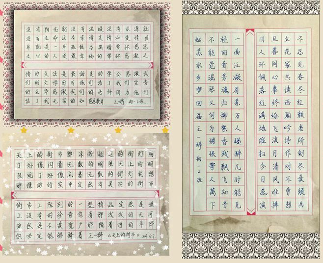 初一年級同學在任課教師(shī)的指導下認真練習,不僅對書(shū)法這一中國傳統藝術(shù)有(yǒu)所了解,而且書(shū)法技(jì)藝也有(yǒu)所提高(gāo);同學們學習書(shū)法熱情高(gāo)漲、态度認真,在一學期的學習創作出了不少(shǎo)的優秀作品。為(wèi)了促進校園的藝術(shù)文化氛圍日益濃厚,形成我校藝術(shù)教育特色,特将初一年級部分同學的優秀書(shū)法作品在校園網上(shàng)展出。
