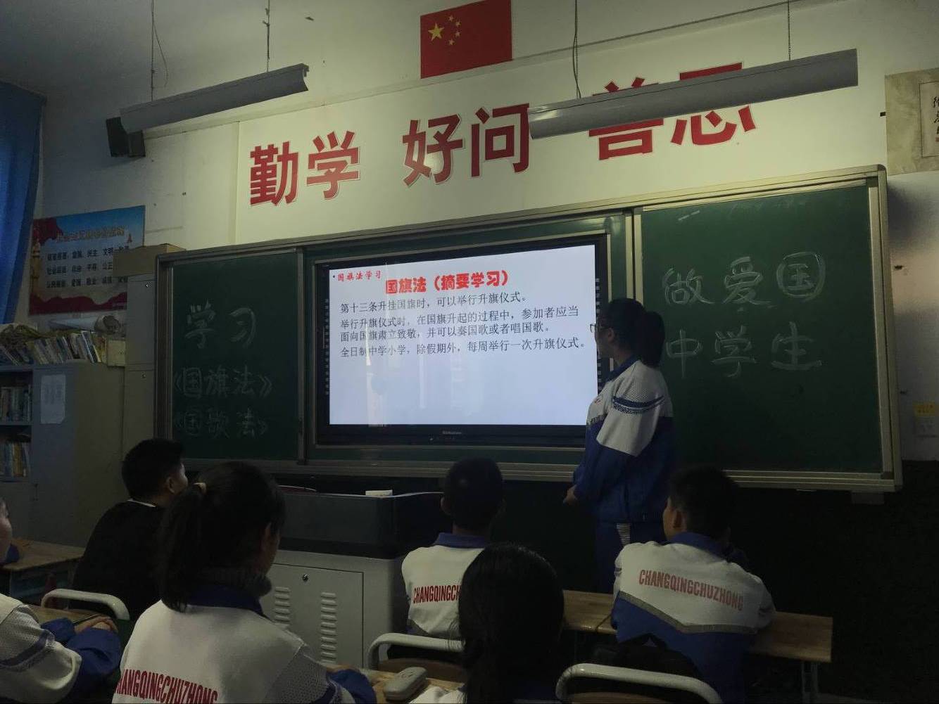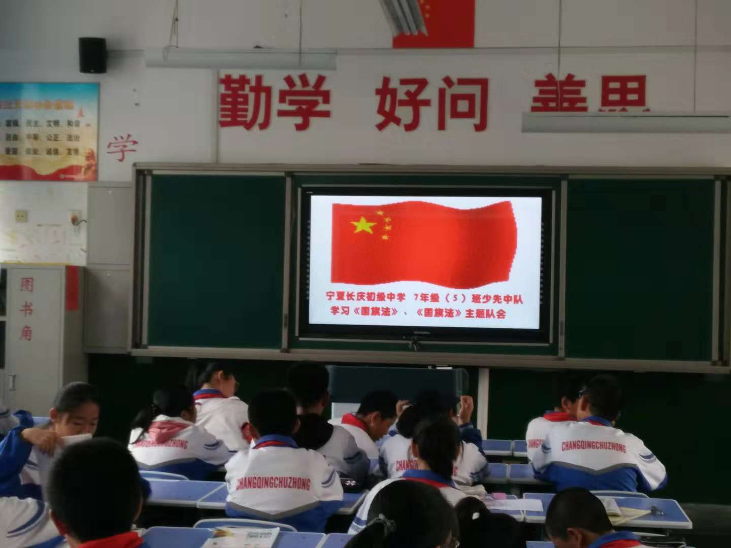 甯夏中衛中學組織愛(ài)國主義教育暨學習《國歌(gē)法》、《國旗法》的主題班團(隊)會(huì)