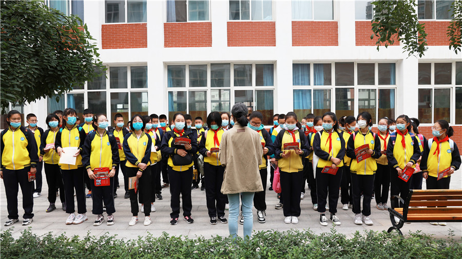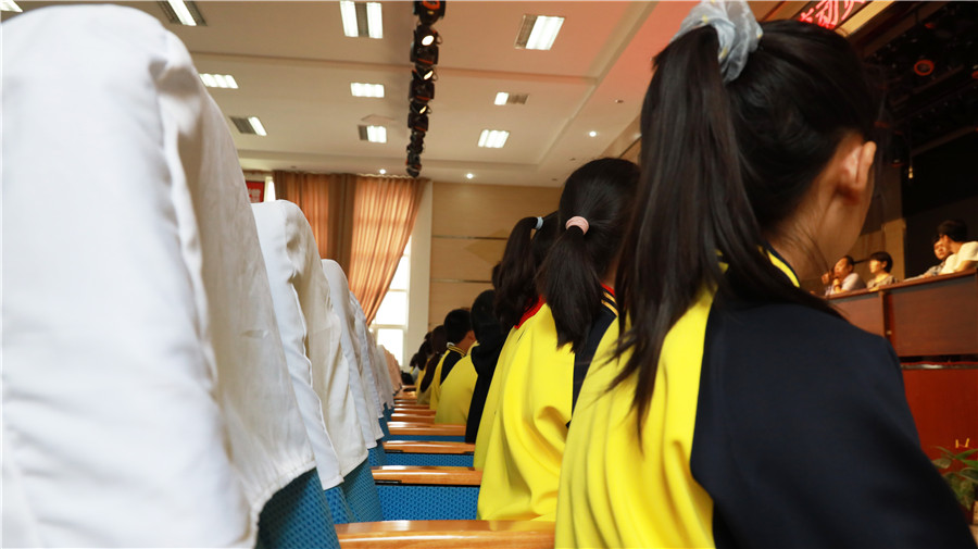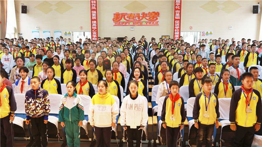 全體(tǐ)初一新入學的同學,以飽滿的熱情,參加了教育動員大(dà)會(huì)。大(dà)會(huì)第一項,全體(tǐ)肅立,齊唱(chàng)中華人(rén)民共和(hé)國國歌(gē)。