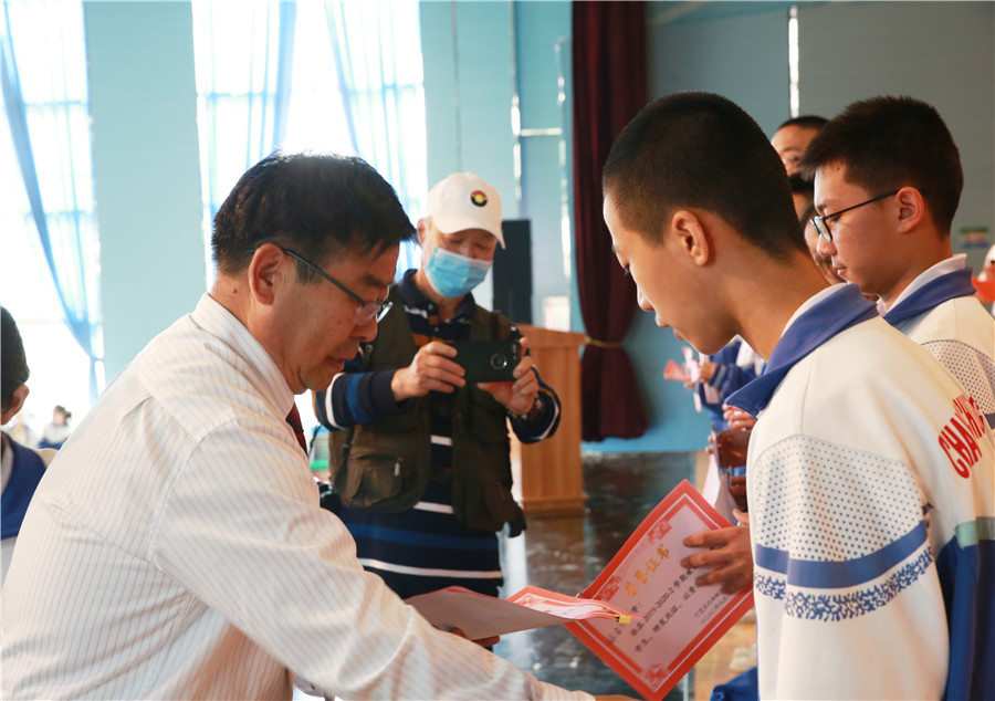 張忠國書(shū)記為(wèi)三好學生代表頒獎