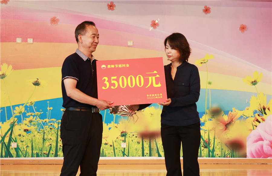 百年大(dà)計(jì),教育為(wèi)本。我校的發展,除了靠全體(tǐ)師(shī)生的努力外,離不開(kāi)自治區教育廳的正确領導,也離不開(kāi)長慶油田對我校的大(dà)力支持。長慶油田公司領導代表為(wèi)我校贈送慰問金,我校黨總支書(shū)記張忠國同志(zhì)接受慰問金,張書(shū)記對長慶油田公司長期以來(lái)的大(dà)力支持深表感謝。