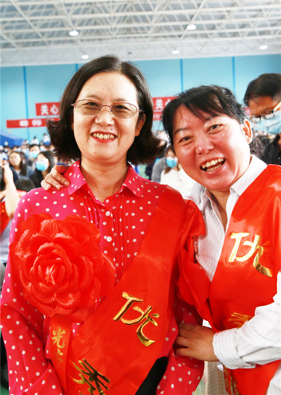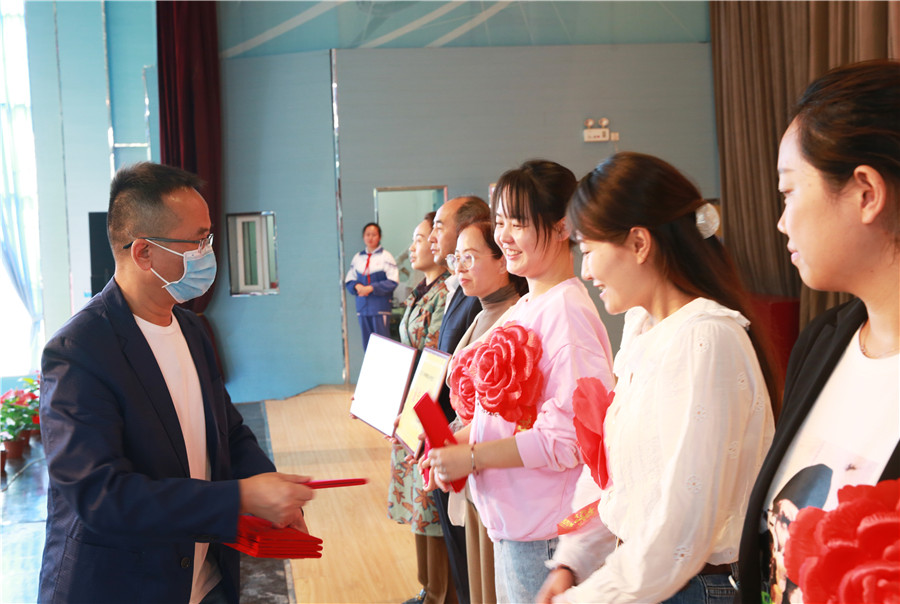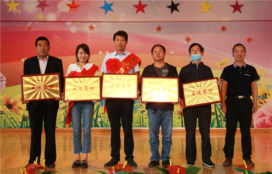 先進集體(tǐ)德育處、總務處、初三年級部、語文教研組和(hé)理(lǐ)化生教研組代表上(shàng)台領獎。