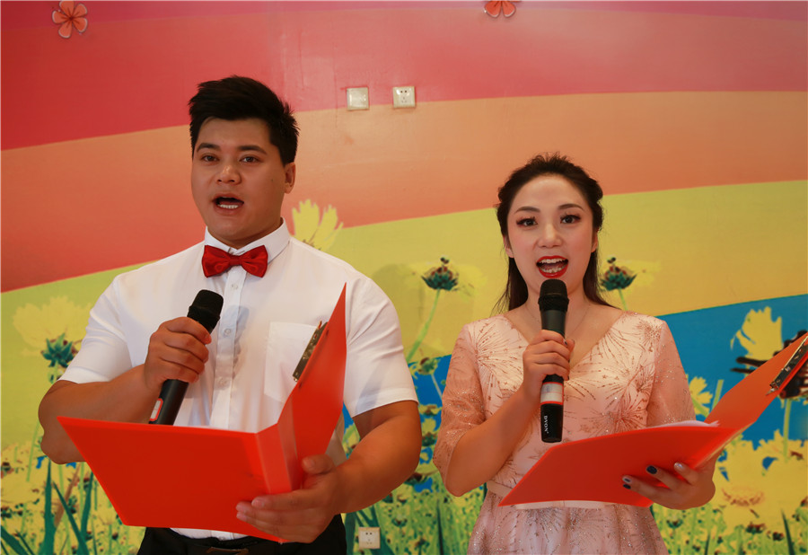 慶祝活動由我校青年教師(shī)慕佼佼和(hé)姚建斌老師(shī)主持