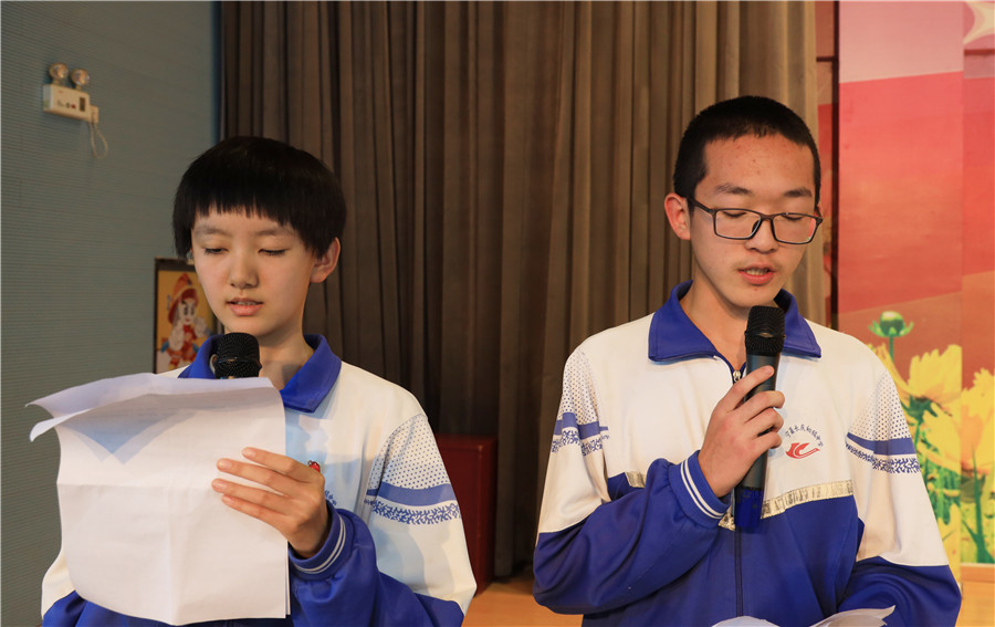 初三學生代表劉錦航、史翌代表全體(tǐ)初三同學作表态發言。
