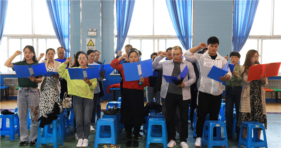 全體(tǐ)初三年級任課老師(shī)也鄭重宣誓,決心嚴格管理(lǐ)、認真備考、不辱使命。