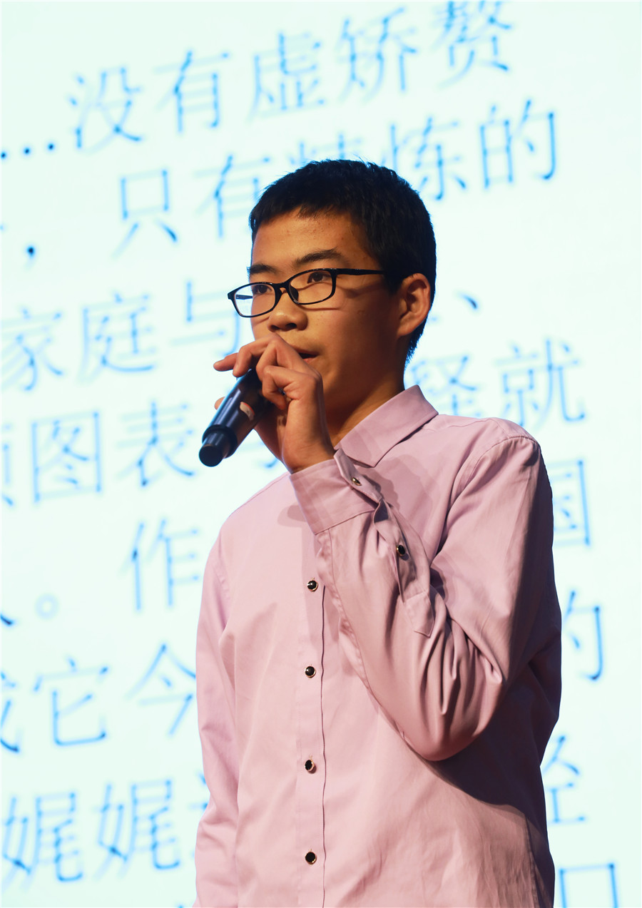 首先登場(chǎng)的是讀書(shū)分享環節,六位師(shī)生根據自己的讀書(shū)情況作了精彩的分享,初一(7)班何怡分享了自己在書(shū)中的所見所聞,有(yǒu)以色列哭牆、耶稣的苦路、魁北克城冰酒店(diàn)、馬爹利城堡、楓葉大(dà)道(dào);初二(6)班的楊詩敏認為(wèi)書(shū)籍的世界裏蘊有(yǒu)萬千奧妙,它陪她體(tǐ)味“國破山(shān)河(hé)在,城春草木深”的憂國之心,領會(huì)“醉裏挑燈看劍,夢回吹角連營”的豪壯;初二(8)班的馬子麟重點跟我們展示了他的讀書(shū)方法和(hé)讀書(shū)筆記,密密麻麻的讀書(shū)批注和(hé)結構清晰的思維導圖讓我們打開(kāi)眼界,他認真細緻的讀書(shū)品格感染了在場(chǎng)的師(shī)生。