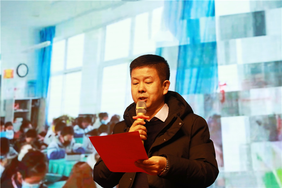 孫會(huì)鈞校長為(wèi)榮獲“讀書(shū)之星”稱号的老師(shī)頒獎。
