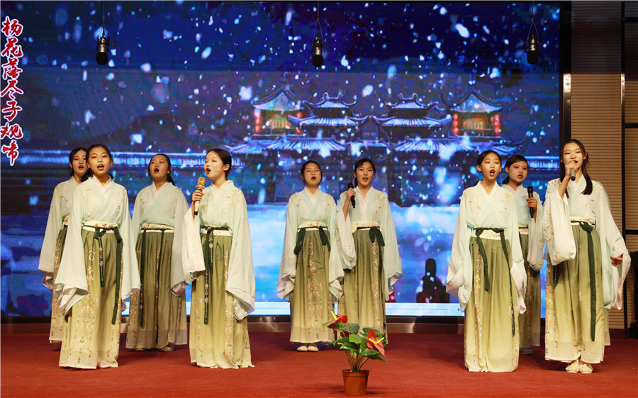 合唱(chàng)團的同學給大(dà)家(jiā)演唱(chàng)詩仙李白的《聞王昌齡左遷龍标遙有(yǒu)此寄》,在優美的歌(gē)聲當中,師(shī)生領略了經典的魅力,回味無窮。
