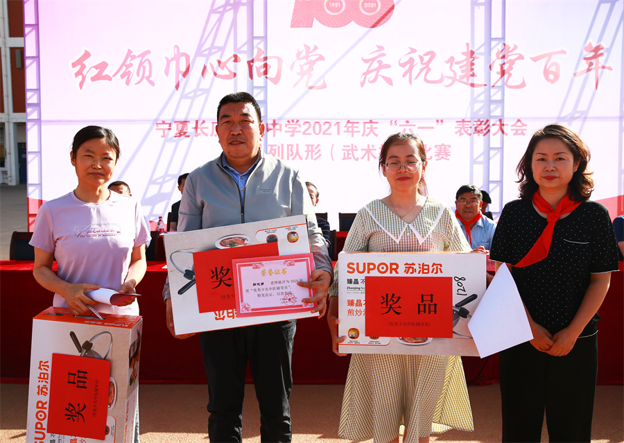 長慶油田公司代表、甯榆服務處的餘霞主任給優秀少(shǎo)先中隊輔導員頒獎