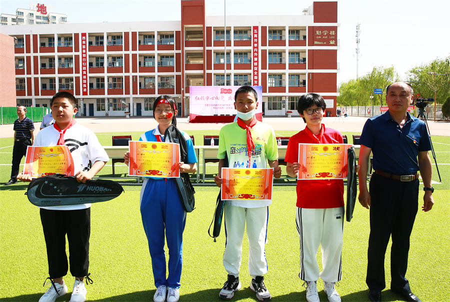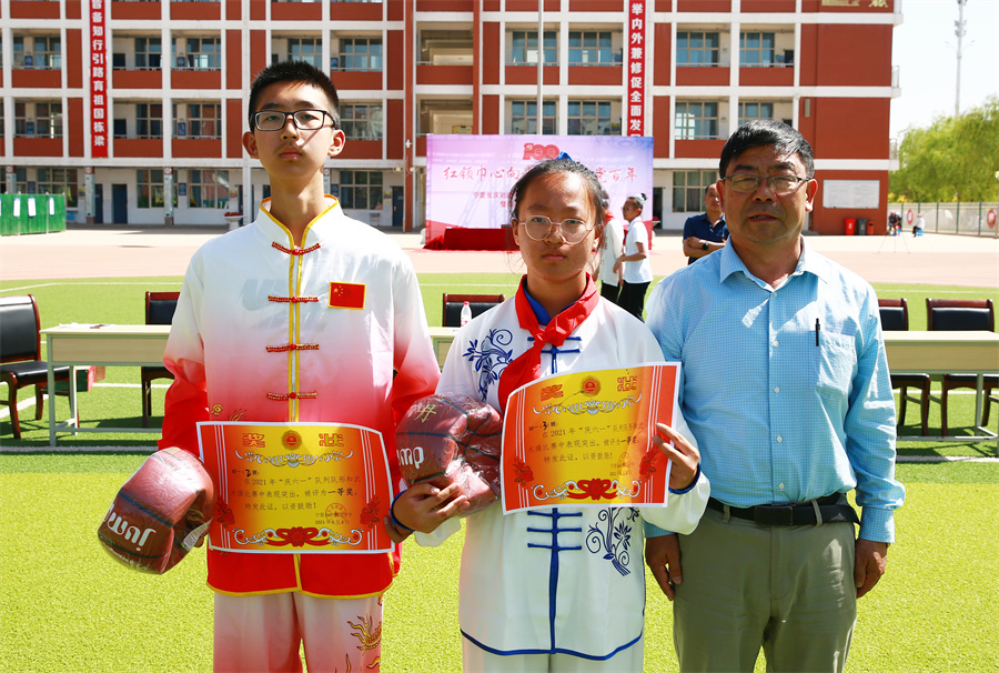 張忠國書(shū)記為(wèi)隊列隊形、武術(shù)操比賽榮獲一等獎的初一(1)班、初一(5)、初一(6)班頒獎。