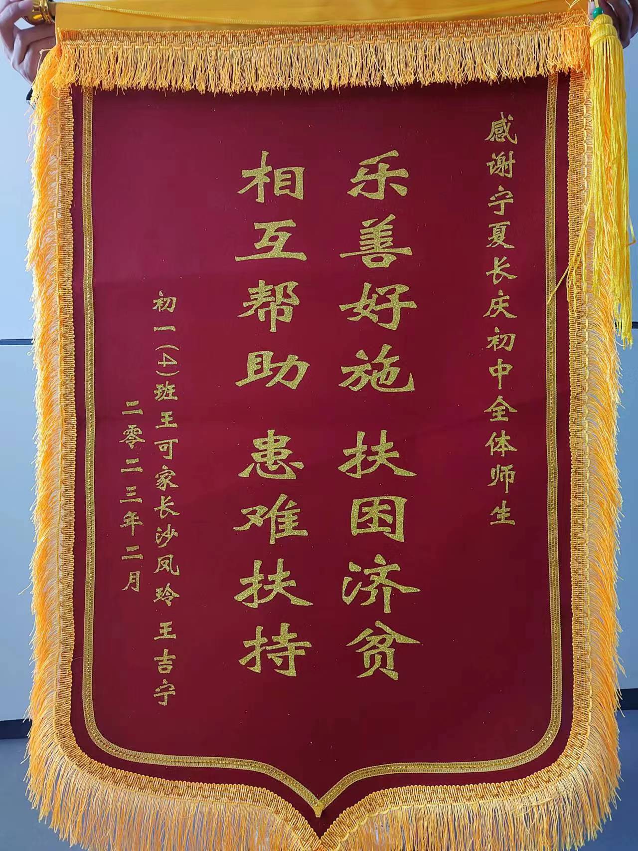 我校師(shī)生将學雷鋒活動內(nèi)化于心,外化于行(xíng),落實在實踐中,在2月23日全校師(shī)生對初一4班患病的同學給予了愛(ài)的幫助,發揚助人(rén)為(wèi)樂的雷鋒精神,患病學生家(jiā)長為(wèi)我校贈上(shàng)錦旗以表心意。