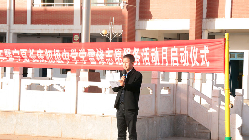 校團委書(shū)記陳龍宣讀學校學雷鋒志(zhì)願服務活動月方案。