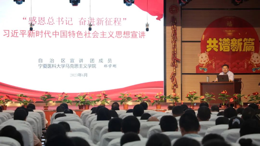 活動還(hái)邀請(qǐng)甯夏醫(yī)科大(dà)學馬克思主義學院副院長鄭學剛開(kāi)展“感恩總書(shū)記奮進新時(shí)代”習近平新時(shí)代中國特色社會(huì)主義思想宣講,鄭教授從習近平新時(shí)代中國特色社會(huì)主義思想是黨和(hé)國家(jiā)必須長期堅持的指導思想、習近平新時(shí)代中國特色社會(huì)主義的科學體(tǐ)系和(hé)精髓要義、習近平新時(shí)代中國特色社會(huì)主義思想在甯夏的生動實踐、把學習貫徹習近平新時(shí)代中國特色社會(huì)主義思想不斷引向深入四個(gè)方面進行(xíng)了生動全面的講述,全體(tǐ)師(shī)生認真聽(tīng)講,深刻領悟。此次活動将學校學習貫徹習近平新時(shí)代中國特色社會(huì)主義思想主題教育活動推向了深入,大(dà)家(jiā)紛紛表示要繼續以高(gāo)質量的黨建引領學校各項工作高(gāo)質量發展,用更加飽滿的精神狀态,為(wèi)學校建設做出更大(dà)貢獻。