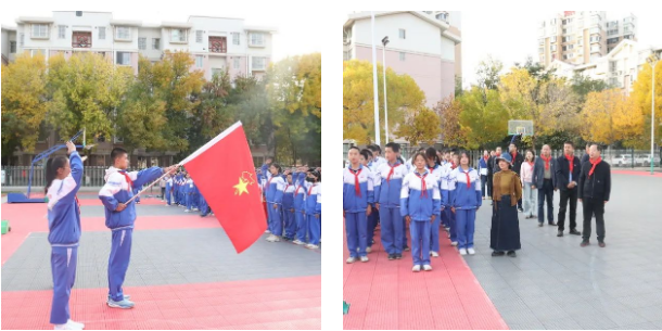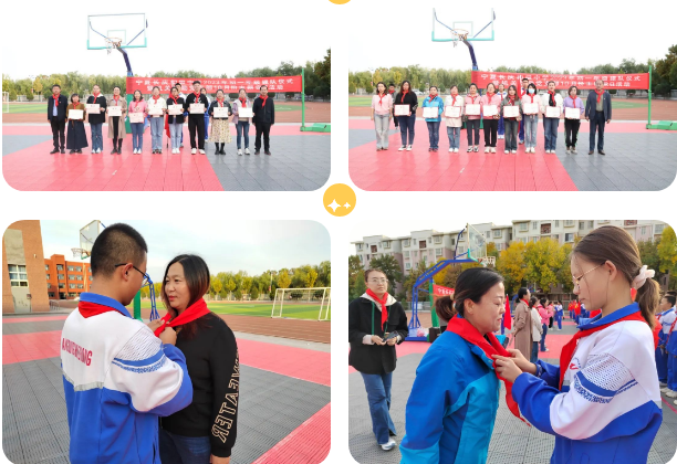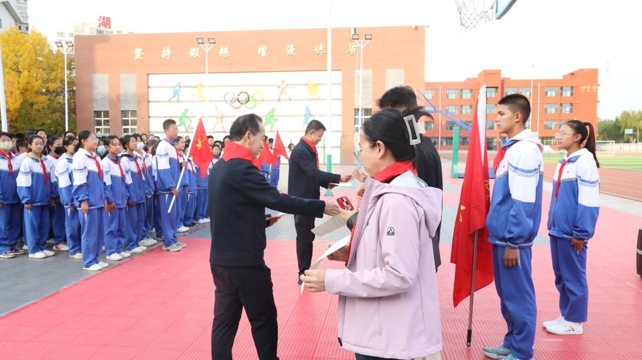 第四項:學校領導和(hé)機關後勤黨支部黨員為(wèi)新建中隊授中隊旗,并為(wèi)新建中隊輔導員和(hé)校外輔導員頒發聘書(shū)。