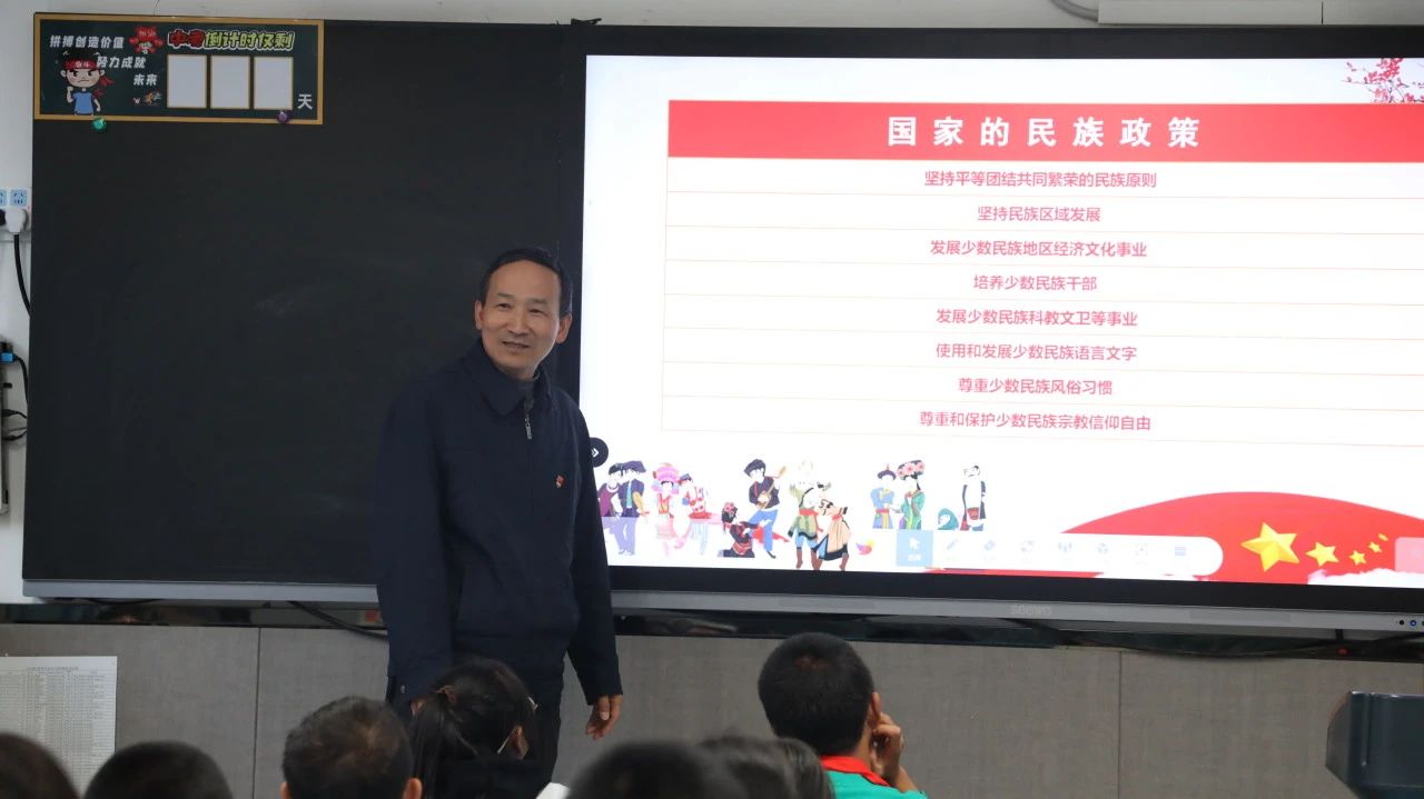 習近平總書(shū)記強調“實現中華民族偉大(dà)複興,需要各民族手挽着手、肩并着肩,共同努力奮鬥”,在嘹亮的《愛(ài)我中華》的歌(gē)聲中,機關後勤黨支部的黨員走入初一年級部各班進行(xíng)宣講。宣講內(nèi)容緊緊圍繞中華民族共同體(tǐ),從“了解中華民族共同體(tǐ)、熟識我國民族政策、鑄牢中華民族共同體(tǐ)意義、維護發展中華民族共同體(tǐ)”四個(gè)方面進行(xíng),牢牢地将民族團結的種子根植在了學生心中。